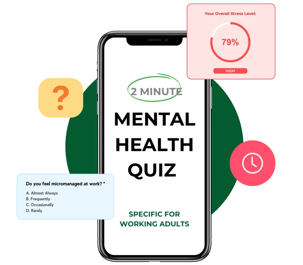 If you’re feeling overwhelmed, constantly stressed, experiencing burnout, or struggling with work-related anxiety, licensed counseling for workplace stress can help. Our online self-assessment quiz is a great starting point to evaluate your current mental health and explore your next steps.